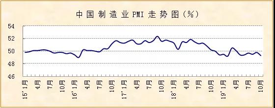 中國物流與采購聯(lián)合會、國家統(tǒng)計局服務(wù)業(yè)調(diào)查中心發(fā)布的2019年10月份中國制造業(yè)采購經(jīng)理指數(shù)(PMI)為49.3%,較上月下降0.5個百分點,創(chuàng)今年二季度以來較低水平。分項指數(shù)顯示,本月市場需求降至收縮區(qū)間,企業(yè)生產(chǎn)和采購增速放緩。