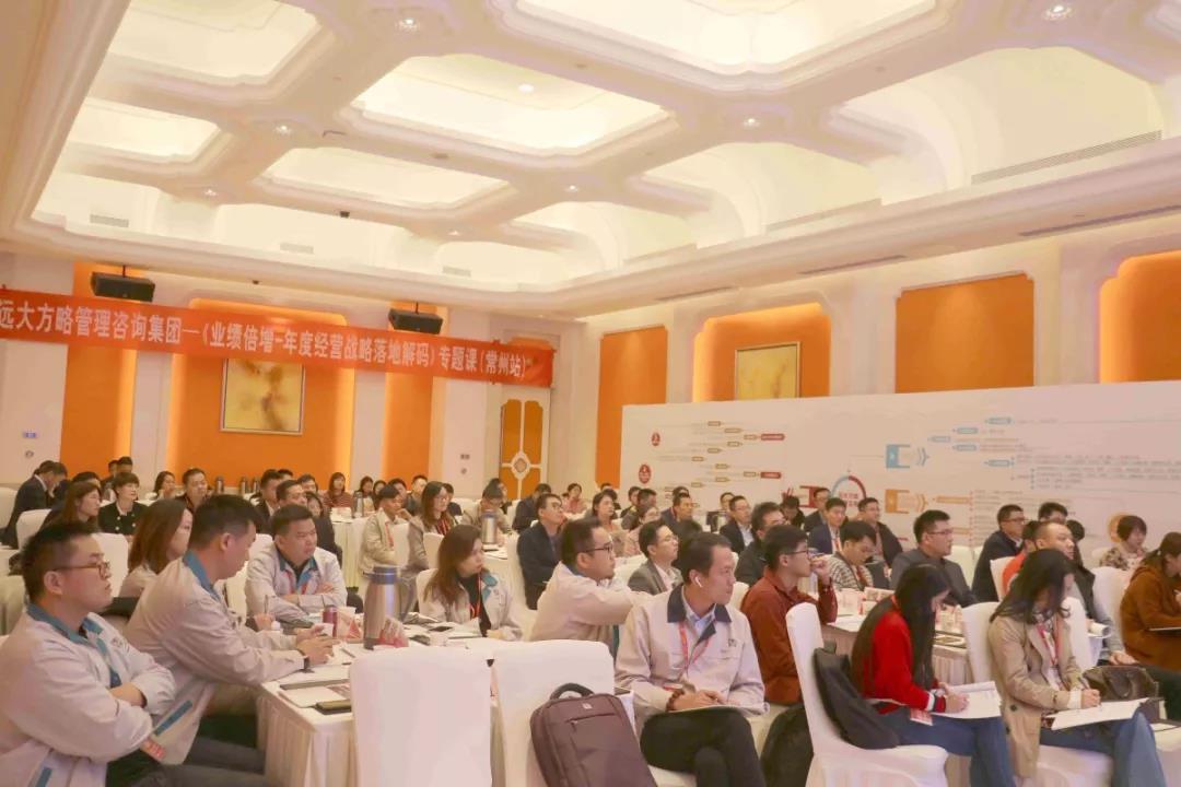 2019年11月15日—16日,遠大方略《業(yè)績倍增---年度經(jīng)營戰(zhàn)略落地解碼》全國巡講課第二站,在常州白金漢爵大酒店開講。現(xiàn)場齊聚長三角100+位企業(yè)董事長、總經(jīng)理、各事業(yè)部副總等參與本次課程學習探討。