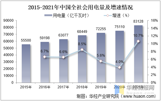 電力行業(yè)是電線電纜行業(yè)最主要的應(yīng)用領(lǐng)域,近年來,我國全社會用電量不斷增長,推動了我國電線電纜需求的增長。據(jù)資料顯示,2021年我國全社會用電量達83128億千瓦時,同比增長10.7%。