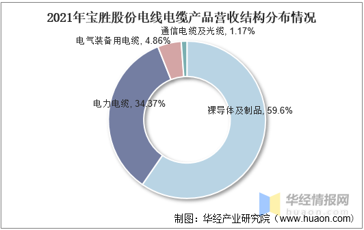 從營收結(jié)構(gòu)來看,2021年寶勝股份電線電纜產(chǎn)品營收中,裸導體及其制品營收為242.34億元,占比為59.6%;電力電纜營收為139.76億元,占比為34.37%;電氣裝備用電纜營收為19.75億元,占比為4.86%;通信電纜及光纜營收4.74億元,占比為1.17%。