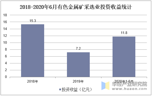 2018-2020年6月有色金屬礦采選業投資收益統計