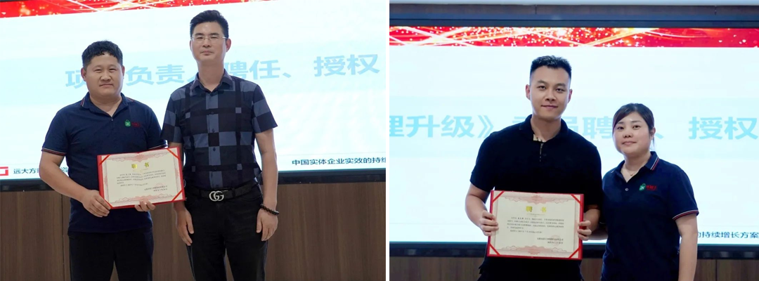 會上,潘總和李總對遠(yuǎn)大方略項(xiàng)目組進(jìn)行了聘用授權(quán),為項(xiàng)目小組關(guān)鍵人員頒發(fā)了聘書,并簽訂誓言集體宣誓,鼓勵(lì)大家全力以赴投身變革,共同創(chuàng)造更具競爭力的企業(yè)。